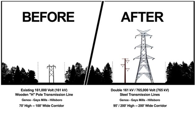 segment of much longer transmission line.The proposed line would use towers as high as 199 feet, substantially more than the current 70-foot high structures. The proposed project would also call for the expansion of the current right-of-way easement to be expanded from 100 feet to approximately 200 feet. If built, the 765 kV transmission would also carry six time more electric power than the largest transmission lines (345kV) now being used in the state... The Website for this project is here: https://www.maribelltransmission.com/ ...Full Story Here ![]() | |||||||||